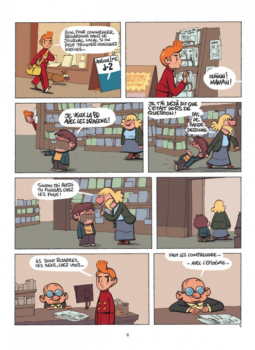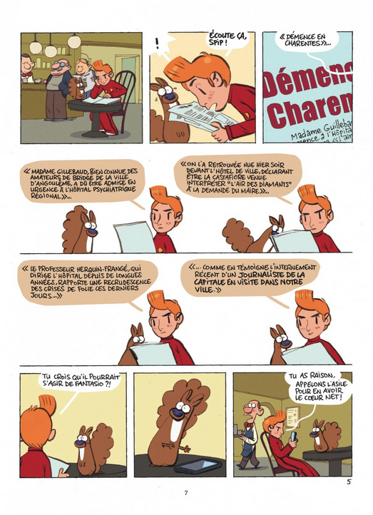 Résumé : Spirou se fait du souci pour Fantasio, qui ne donne plus signe de vie depuis qu’il est parti en reportage à Angoulême. Il décide donc d’aller à sa recherche et retrouve sa trace : Fantasio a été interné dans l’hôpital psychiatrique de la ville, souffrant du « syndrome d’Angoulême » qui conduit les malades à se prendre pour un personnage de bande dessinée. Le groom mène l’enquête.