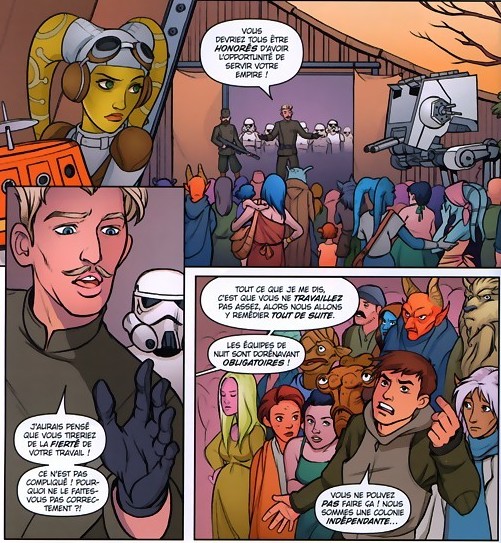 Ce n’est pas tant le scénario qui fait la force de cet album, mais bien sa diversité graphique. Les influences des séries Clone Wars et Rebels donnent forcément le ton de ces histoires, qui ont d’ailleurs été déclinées sous forme d’animation, visible gratuitement sur internet. Mais certains ont une vigueur non pas féminine, mais vraiment artistique, comme c’est le cas pour l’histoire des deux sœurs de la Résistance Paige et Rose, empêtrées dans une histoire d’exploration qui tourne mal, dans un récit où la faune et la flore inconnues sont essentielles. La création se retrouve ici avec plaisir.