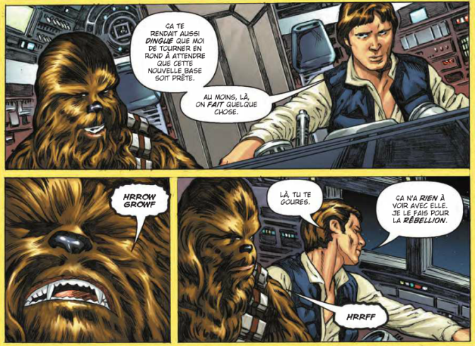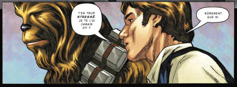 Réunissant plusieurs dessinateurs, tous ne sont pas à la hauteur : parfois un peu vieillot, parfois peu reconnaissables, les personnages sont un peu caricaturaux. Jouer au sabacc, échapper aux mercenaires trandoshans, briser quelques cœurs, Han Solo est égal à lui-même, ou à ce qu’on attend de lui. Du coup, on aurait aimé un peu plus de surprises, davantage de psychologie, une pincée d’originalité. Les histoires sont dans un format trop court pour s’aventurer au-delà de l’attendu, mais c’est finalement logique pour ce qui ressemble à un bel hommage au personnage. Un hommage qui peut également s’appliquer à tout l’univers étendu de Star Wars.