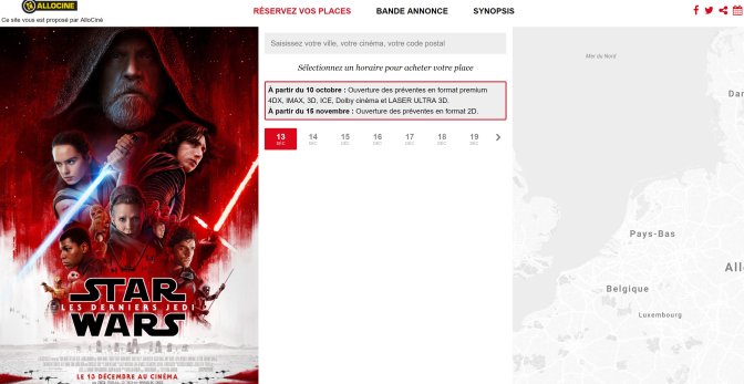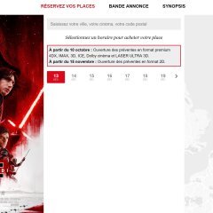 Aussi, pour être les premiers, ce mercredi, il faudra sabrer le laser le premier, en ligne, mais aussi dans les cinémas concernés, puisque les cartes de cinéma permettront de réserver son sésame pour la Guerre des étoiles dans les 1000 salles programmant l’épique de Rian Johnson (combinaison encore au conditionnel)