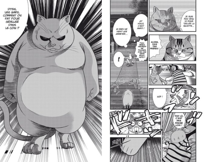 Au niveau du graphisme, le trait reste comique, la manière dont les chats sont stylisés et représentés, leurs combats, pointent plus vers la comédie que vers le drame. Les humains, à quelques exceptions près, sont les grands absents mais paradoxalement, ils ne nous manquent pas du tout.