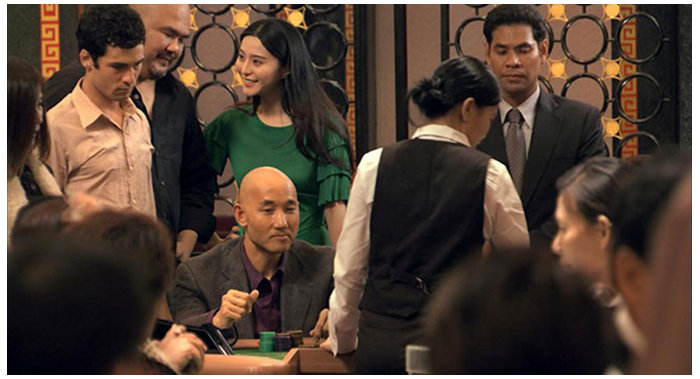 C’est une expérience du même ordre que nous fait partager Stretch dont le protagoniste, catapulté à Macao, est à la fois grisé et effaré de se trouver entraîné dans la spirale vertigineuse du succès, de l’argent et du jeu dans un monde étrange, aux règles impénétrables et perverses, où il a la sensation d’être perdu. Ses tentatives de se raccrocher à l’univers familier de sa vie précédente au moyen de textos qui s’inscrivent à l’écran et de messages qu’on entend en voix off s’avérant inutiles.