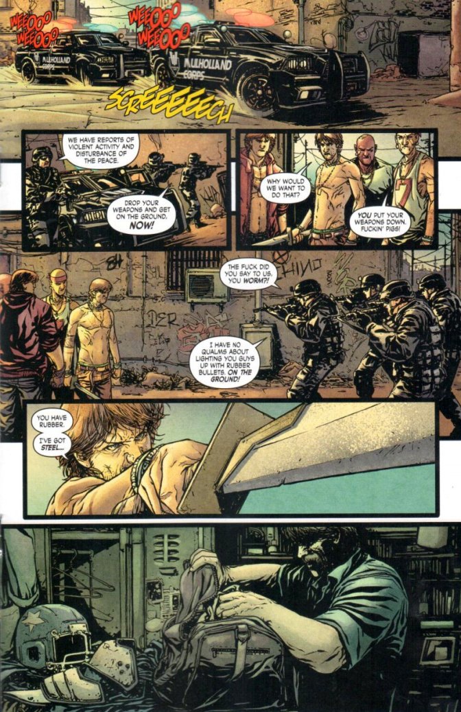 Petit retour en arrière pour bien comprendre les enjeux de ce nouveau tome : suite à un séisme d’envergure, Los Angeles est scindé en deux par une immense muraille : d’un côté la ville des riches et de l’autre, la terre de ceux qui cherchent à survivre sauvagement sur les cendres d’une ancienne civilisation. Le sport le plus populaire, un combat de gladiateurs (les fameux Suiciders) d’un nouveau genre (aidés notamment par des opérations pour booster leurs corps), sera le théâtre de l’affrontement de deux symboles, chacun issu d’un côté du mur.