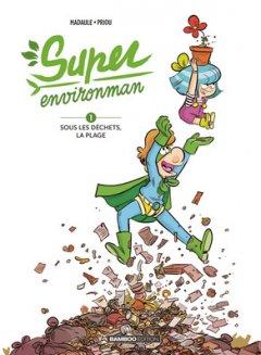 Résumé : {Superenvironman T.1 : sous les déchets, la plage} nous raconte comment un père tente de devenir le super-héros défenseur de l’environnement sous la poussée – ou la contrainte – de sa petite fille.