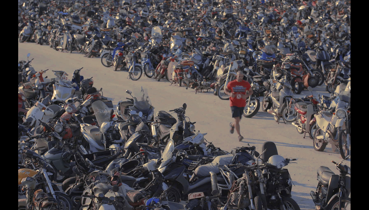 Critique : Des plans grand-angle, méticuleusement composés, voient passer la petite silhouette de ce Sisyphe moderne. L’homme court. Sous un pont, dans une casse de motos, au bord d’un lac, devant un cimetière, il court. Petit homme dans le vaste paysage, Panos cherche la liberté, ou plutôt la libération. De quoi ? Nul ne semble le savoir, pas même lui.