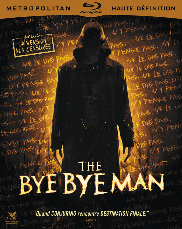 Résumé : Lorsque trois étudiants s’installent dans une vieille maison aux abords de leur campus, ils libèrent inconsciemment le Bye Bye Man, une entité surnaturelle qui ne hante que ceux qui découvrent son nom. Les amis comprennent alors qu’il n’y a qu’un moyen d’échapper à sa malédiction et d’éviter qu’elle ne se propage : ne pas le dire, ne pas y penser. Quand le Bye Bye Man arrive à s’immiscer dans vos pensées, il prend le contrôle et vous fait commettre l’irréparable…