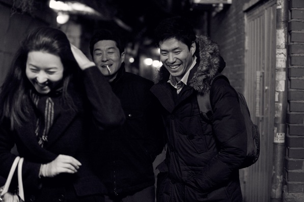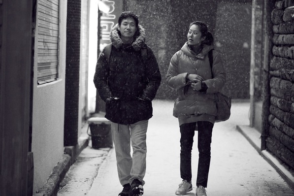 Critique : Tourné en une semaine dans les derniers jours de l’année 2010, Matins calmes à Séoul (The Day He Harrives) est une nouvelle et brillante déclinaison, cette fois ci en un lumineux noir et blanc*, de la méthode Hong Sang-soo. A son habitude, le cinéaste s’est imposé au départ quelques contraintes d’ordre quasi mathématique pour laisser ensuite les choses se mettre en place et les situations se développer pour ainsi dire d’elles-mêmes, le travail du metteur en scène consistant essentiellement à écarter les obstacles qui pourraient gêner cette auto-genèse du film et à empêcher l’entreprise de s’enfermer dans le piège d’un système fermé. La décision la plus radicale, une fois la machine lancée, a d’ailleurs été, d’après lui, de suspendre brièvement le tournage le dernier jour pour attendre l’arrivée annoncée de la neige sur Séoul.