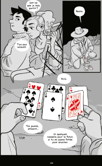 Critique : Si l’on se fie à ses publications en français chez Kinaye, on pourrait croire que Molly Ostertag dessine une lente mais progressive évolution qui la fait passer de l’aventure fantastique du Garçon Sorcière, encore enfantin, à l’amour fantastique ado de La fille de la mer, pour arriver au thriller fantastique ado-adulte de The deep dark, voulant toucher avec émotion un public qui grandit, capable d’entendre des histoires plus difficile et de s’ouvrir davantage. Ce serait ignorer la plupart de ses autres publications, comme Alleycat ou Strong Female Protagonist qui avaient des visées autrement plus adultes, mais restons sur les parutions françaises, car cette évolution est plus facile à visualiser. En effet, avec The Deep Dark, l’autrice semble basculer dans un environnement plus sombre, ce que suggérait le titre évocateur. Pas forcément par cette chose tapie dans l’ombre, mais bien par ce qui l’environne : la maladie quotidienne de la grand-mère, une sexualité peu ou proue refoulée, les conditions de vie et de travail, mais aussi le passé de cet(te) ami, devenue amie, qui a subi des violences de la part d’un compagnon toxique. Bref, les grands éléments pour un drame sont présents, et ce secret issu du fantastique, que l’on pouvait penser simple métaphore du secret et de l’enfermement, est bel et bien présent et réel pour le récit, mais sans finalement en prendre toute la place. Car comme pour La fille de la mer ou même la trilogie du Garçon Sorcière, même si le fantastique justifie le titre, même si les questions de genre, d’homosexualité et d’acceptation sont elles aussi très présentes, ce n’est pas ce que l’on retient de l’œuvre de Molly Ostertag, mais plutôt son jeu de dévoilement constant des émotions, à l’image de la Mare au Diable de Georges Sand.