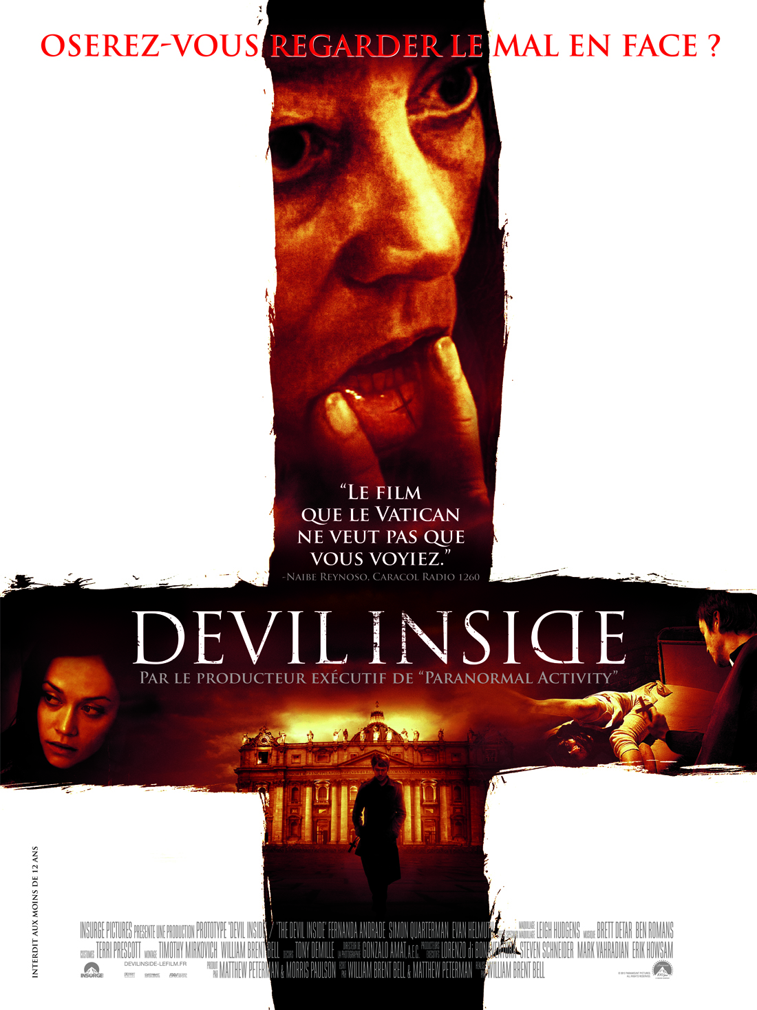 Notes : Micro budget (1M$) mais bon score aux USA (+ de 50M$), grâce à une première semaine conséquente, The Devil inside pourrait faire illusion, avec ses extraits bétons dans le genre réalisme documentaire à faire passer L’exorcisme pour un film pour mômes. Sauf que le mini phénomène a chuté de plus de 80% lors de son second week-end d’exploitation américaine, que les critiques locales ont été désastreuses et que les avis d’internautes sur IMDB.com semblent plus effroyables que le film en question. De plus, on ne semble pas très pressé de dévoiler le film à la presse en France. Alors, après tout cela, vous y croyez encore (au film, pas au Malin !). En cas de doute, voici le dernier extrait proposé par Paramount France.