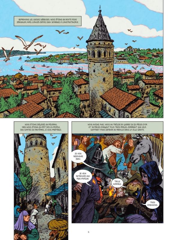 Ces morts qui ne veulent pas mourir, jugeant indigne et même injuste le sort qui leur arrive, sont touchants. Et l’on voit aussi la réaction de l’Église officielle qui monnaye son aide et n’est pas du tout choquée par ces fantômes en quête d’un retour à la vie en guise de justice. Et il faut reconnaître que le sort s’acharne sur eux. Nous voudrions tous qu’ils puissent s’en sortir, mais le destin n’est décidément pas de leur côté. Et le destin, au Moyen-Âge, s’appelle Dieu, surtout en Terre Sainte. D’ici à ce que nos héros ne se retournent contre leur créateur, il n’y a qu’un pas.