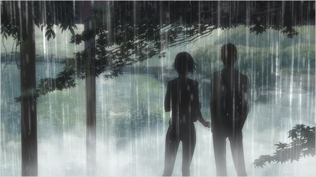 Car Yukino porte en elle une blessure liée à une expérience difficile et la relation qu’elle entretient avec son nouvel ami agit comme un attribut thérapeutique à son mal-être. La découverte de cet amour naissant, pur et pourtant impossible, se révèle terriblement touchant. Les dialogues se voient restreints à leur plus simple appareil puisque la mise en scène se charge d’abreuver le regard de plans et situations devant lesquels on reste assidûment admiratif. Une seule petite faute de goût est à signaler dans The Garden of Words, il s’agit du morceau musical affecté à la scène clé de la manifestation physique des sentiments de Yukino à l’égard de Takao. Celui-ci a tendance à accentuer un côté mièvre et "guimauve" entre les deux personnages, une chose que le film s’était toutefois très appliqué à éviter jusque là. Malgré tout, ceci ne ternit en rien l’envoûtement déclenché par cette œuvre mélancolique teintée d’une beauté cristalline.