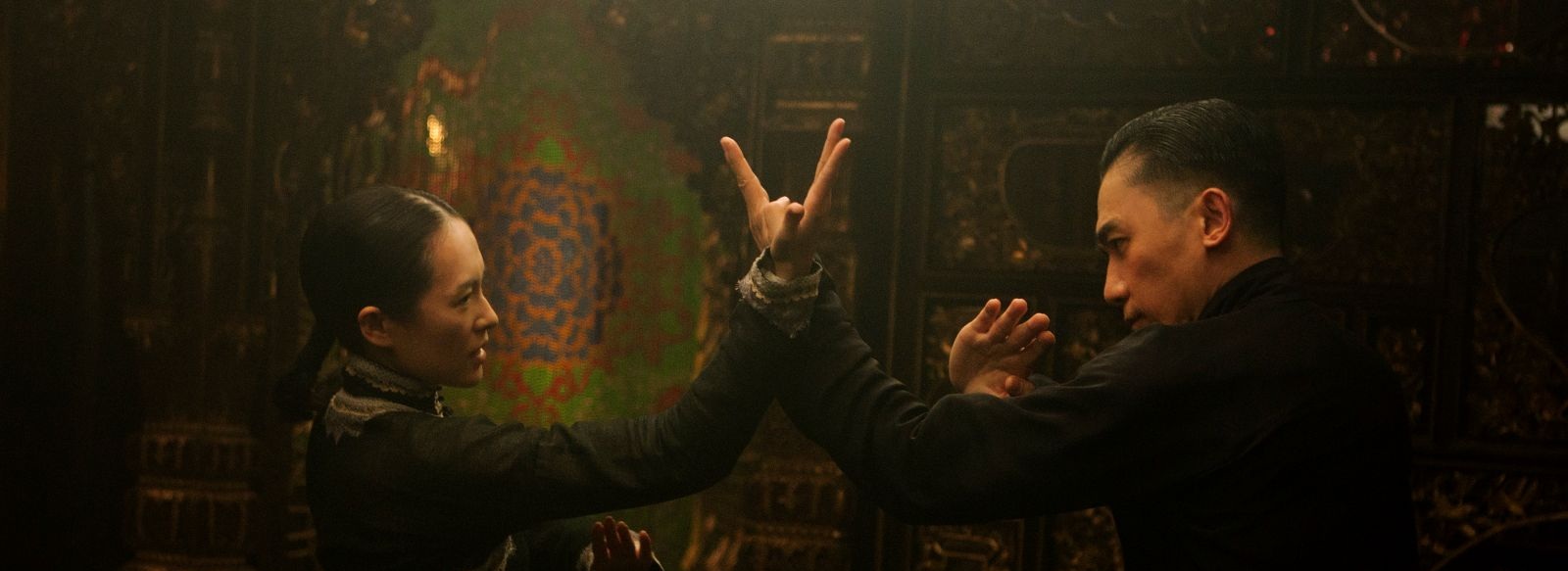 À l’image, la chorégraphie des corps égrène les coups des guerriers telle une pluie de notes sur une partition musicale. En écho, un air d’opéra donne le ’’la’’ du combat. Aux commandes, Yuen Wo Ping (Matrix, Kill Bill,...), impose un entraînement drastique long de plusieurs années pour tous les acteurs. Une performance spectaculaire, surtout lorsque l’on sait que l’intégralité des combats se sont faits en prise de vue directe et que seul 10 % du film a bénéficié d’effets spéciaux ! Dans The Grandmaster, pas de mépris de la gravité, le réalisme est au rendez-vous. Et bien souvent, l’affrontement n’est que la traduction d’un sentiment plus profond : honneur, peur, vengeance, et bien sûr amour. Plus diffuse mais toujours aussi subtile, la rencontre amoureuse noyaute en sous-main le récit. Déclarés rivaux, Ip Man et Gong Er trouvent pourtant, dans le regard de l’autre, le temps d’un sublime tango-combat, l’étincelle de l’âme sœur. L’idylle, bien sûr impossible, commence et s’arrête là. Rien ne se consomme et tout se perd chez Wong Kar-wai... Et dans une scène reflet de 2046, Tony et Zhang rejouent pour la seconde fois, attablés dans un restaurant, le soir du nouvel an, la fatalité d’un destin qui les a à jamais séparé. À la lueur d’une lumière crépusculaire et artificielle, le non-couple erre dans les rues d’une Hong Kong transfigurée par les années 50 et l’occidentalisation croissante, comme leurs prédécesseurs dans In the Mood for Love. En silence et en quête d’identité. Dans The Grandmaster, la vapeur du pouvoir s’inverse constamment. Et si le titre nous annonce l’hégémonie d’un grand maître, le cinéaste a l’intelligence d’approfondir la notion de dominant/dominé et de focaliser son film sur l’impermanence de la victoire.