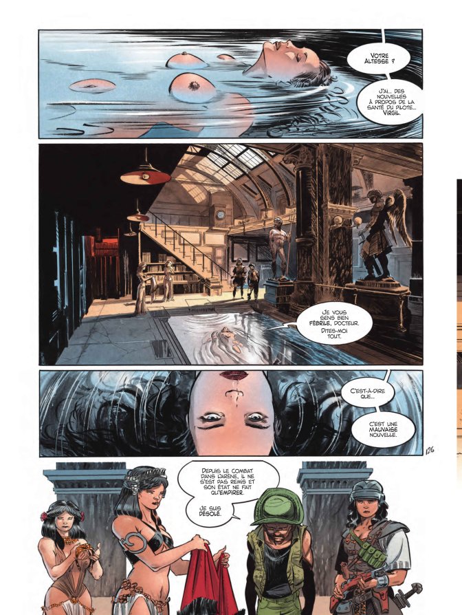 Critique : Une meute de journalistes attendent de voir passer Betty, la fille du colonel, qui pilote un avion de chasse. La première femme aux commandes de tels engins attire la presse. Elle ne voit qu’une chose à tirer de la venue des reporters : se servir de leur force de frappe pour retrouver un teckel perdu. Elle ignore qu’une autre personne haut placé a les mêmes objectifs qu’elle. Cette intrigue va rapidement recouper celle de Virgil, dans le coma sur cette île maudite de Manhattan. Autour de lui, les Amazones.