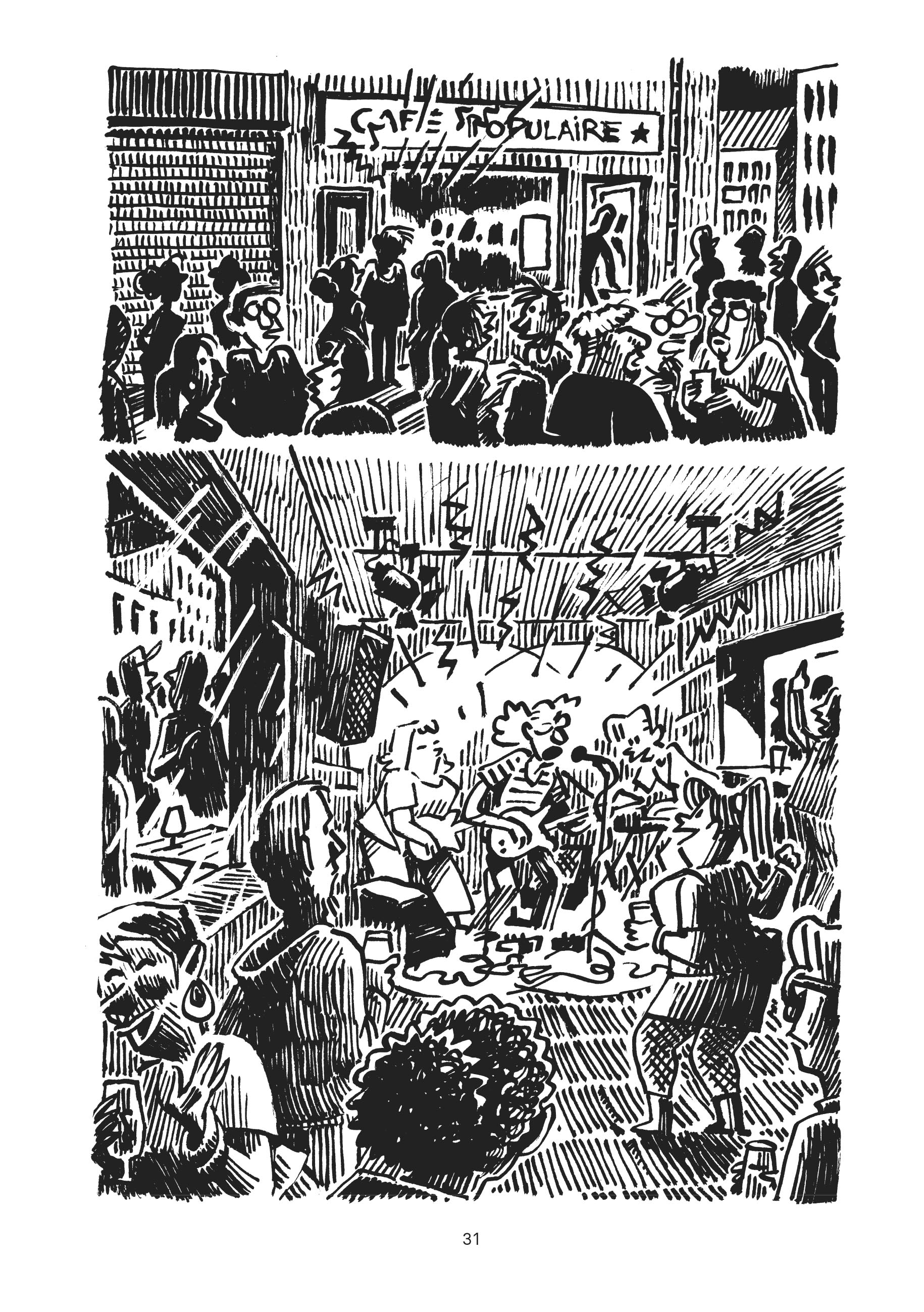 Le dessin économe d’Otto T. – cofondateur des Éditions FLBLB qui éditent l’album, et par ailleurs auteur de l’excellente saga Petite histoire des colonies françaises – qui utilise uniquement le crayon noir sur fond blanc est parfaitement adapté à un récit qui rend hommage à la culture Do it yourself. La simplicité du trait, qui empreinte à Reiser et à la culture fanzine, n’empêche toutefois pas la transmission d’une énergie communicatives et, pour le lecteur, de reconnaître les personnages en toute situation.