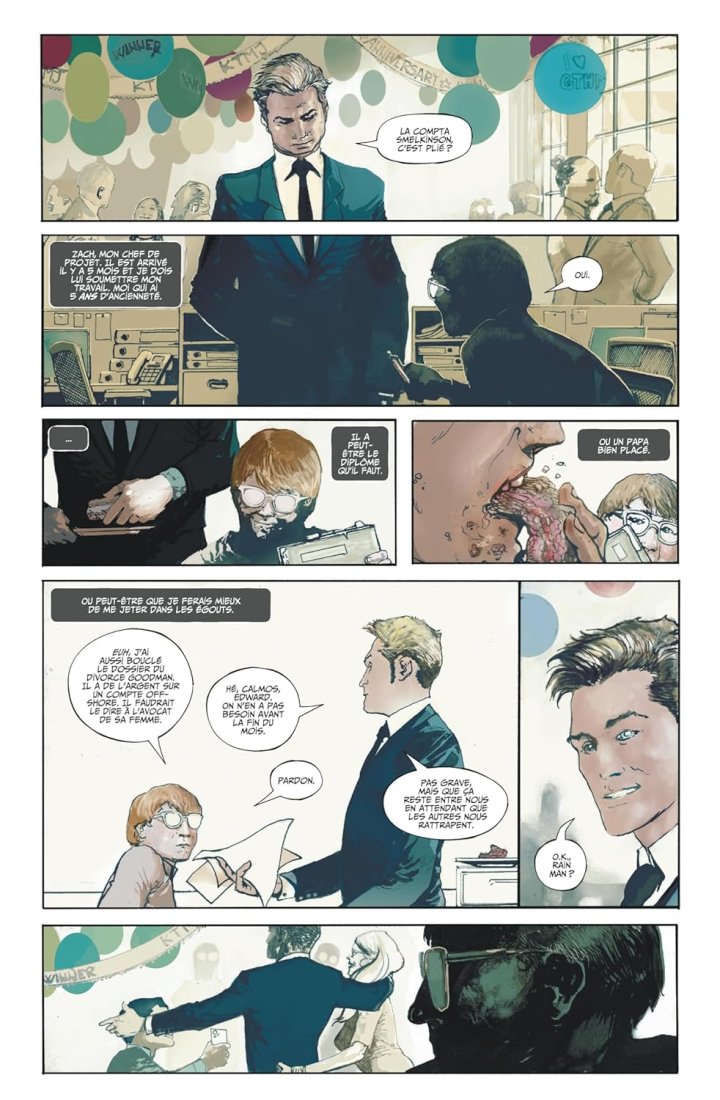 Critique : Publiée au sein du prestigieux Black Label de DC Comics, The Riddler complète, dans un esprit crossmedia, le film de Matt Reeves en plaçant la focale sur Edward Nashton, le principal antagoniste de Bruce Wayne dans The Batman. C’est pour cela que nous retrouvons la signature de Paul Dano, acteur star d’Hollywood qui Nashton le personnage dans le film. Loin d’être un produit dérivé sans saveur, The Riddler est un thriller psychologique convaincant qui revient sur la genèse de l’anti-héros Nashton, de son enfance dans un orphelinat jusqu’à la frustration qu’il éprouve face à sa situation. Le lecteur est plongé dans les pensées de Nashton, personnage complexe et émotionnellement fragile qui bascule progressivement dans le crime. Le récit évite intelligemment le manichéisme : on est d’abord pris de pitié pour ce jeune homme victime de la gangrène qui touche Gotham, avant de saisir que ses obsessions s’avère, à leur tour, malsaines puisque in fine Nashton ne cherche pas à combattre le crime, mais à provoquer le chaos.