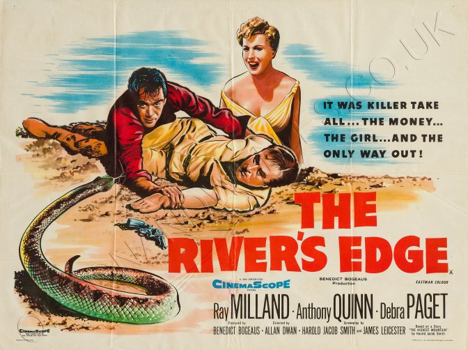 Notre avis : Dans la longue et prolifique carrière d’Allan Dwan (on lui attribue 400 films à peu près), The river’s edge fait partie des dernières œuvres, souvent jugées comme mineures et parfois, comme ici, inédites en France. La curiosité des cinéphiles devrait être attisée par ce caractère inédit, bien sûr, mais aussi par la distribution (Ray Milland, Anthony Quinn et Debra Padget, tout de même). Or ce qui nous retient, c’est l’extraordinaire économie du film : économie certainement faute de moyens, encore que cela ne l’entrave pas, économie surtout dans la narration : Dwan, comme nombre de cinéastes âgés, va à l’essentiel ; il se concentre sur les trois personnages, le mari, l’ancien amant- bandit, et la femme qui balance entre les deux, sur une action réduite à quelques topoï (l’argent, la frontière, la violence) et opère par retranchements ; on cherchera en vain des fioritures dans la mise en scène comme dans le scénario. Si le réalisateur vise l’épure, la transparence et la lisibilité, c’est qu’il a conscience à la fois du manque d’originalité de l’histoire (on trouvera des exemples similaires à foison, même si le modèle semble être Le facteur sonne toujours deux fois) et, c’est notre supposition, qu’il peut faire de ce récit basique une réflexion morale.