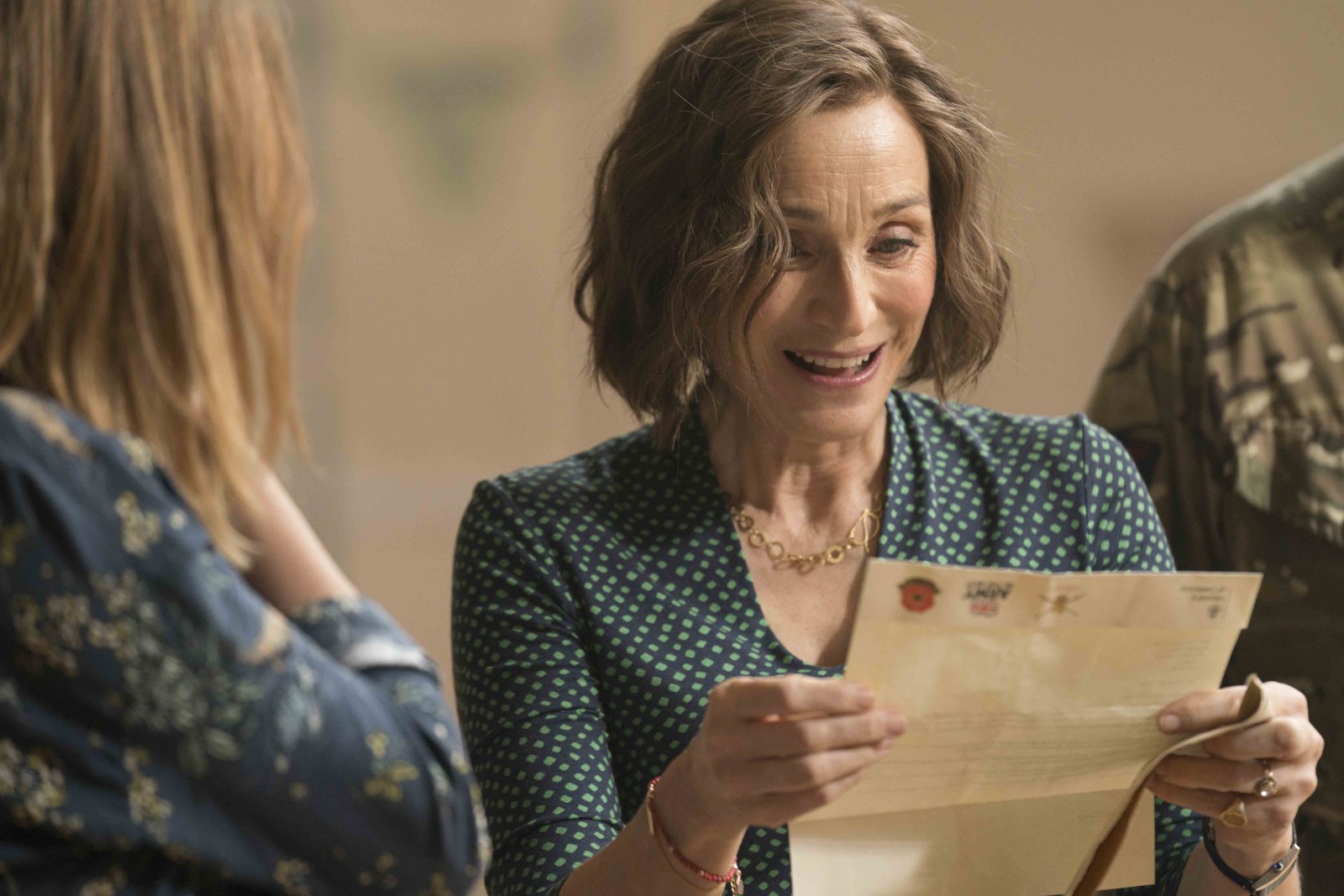 La très grande surprise réside dans la présence des deux immenses comédiennes, que sont Kristin Scott Thomas et Sharon Hogan. Elles jouent ces épouses de militaire, l’une étant plus gradée que l’autre, augurant ainsi une forme de joute pour le pouvoir. Il y a beaucoup de respect entre elles. On découvre avec beaucoup d’intérêt que les communautés de femmes de militaires reproduisent le système hyper-hiérarchisé de l’armée, ainsi que son dispositif fraternel fondé sur le solidarité et l’entraide. The Singing Club se transforme alors en un ingénieux essai sur le management et la conduite de projets. Les deux comédiennes s’amusent, en rajoutent même parfois dans le caractère affirmé des deux héroïnes qu’elles incarnent, au risque de la caricature, ce qui n’est jamais ridicule. Elles ne nient pas le plaisir à endosser ces destins aussi joyeux qu’ils sont fracturés par le deuil. Elles irradient l’écran de leur générosité et leur motivation à entraîner leurs collègues dans ce désir fou de chansons et de vie.