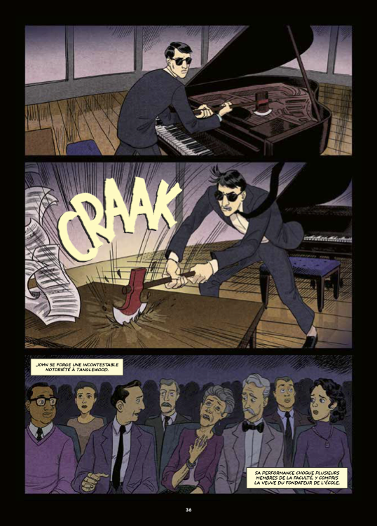 Sur le plan graphique, Koren Shadmi mise sur la lisibilité du dessin, avec des aplats de couleurs et un gaufrier classique. S’il accentue les traits, les personnages célèbres sont représentés de façon convaincante. Des décors aux vêtements en passant par l’utilisation des couleurs, le dessinateur nous replonge dans l’atmosphère des années 1960, avec tous ses excès. On comprend dès lors la possibilité, dans un tel univers, de voir émerger un groupe à la proposition aussi radicale.