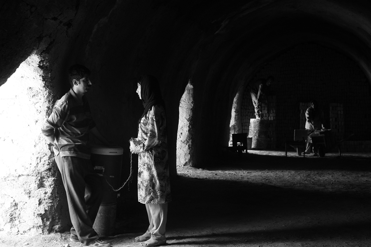 Il n’y a pas de mot suffisant pour caractériser la beauté des images. La lumière très travaillée et le noir et blanc subtil accompagnent le destin de ces familles pauvres qui vivent à même leur briqueterie dans des logements rudimentaires. Un chef de chantier apporte chaque jour des morceaux de glace pour étancher leur soif et se dévoue nuit et jour pour permettre à cette industrie artisanale de survivre. Mais le patron a quelque chose à annoncer à ses ouvriers qui ne sont plus payés depuis des mois. On se doute bien qu’il s’agit de la cessation imminente de cette activité économique traditionnelle. Mais Ahmad Bahrimi prend le temps de la révélation. Le long-métrage est construit sur la méthode narrative des Contes des mille et une nuits. En effet, le scénario empile les temporalités, avec un phénomène récursif multipliant les points de vue de l’histoire qui se déroule sous nos yeux. Chaque famille devient un personnage principal de ce récit d’une décomposition économique et sociale. On y perçoit les enjeux de rivalité entre les ouvriers, les luttes entre communautés kurdes et iraniennes, les récits amoureux qui ne se disent jamais vraiment, et surtout la domination du patronat qui s’autorise les pires conditions de travail, sous couvert d’un management patriarcal des temps anciens.