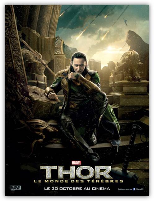 Notes : Le super héros nordique continue sa promo avant son passage en salles le 30 octobre 2013. Deux nouveaux posters personnages débarquent sur la toile en mettant à l’honneur le puissant Thor armé de son marteau Mjolnir ainsi que Loki son intrigant demi-frère dont le même outil de destruction git à ses pieds au beau milieu d’un royaume en ruines qui semble bien être celui d’Asgard. Il nous tarde d’en savoir un plus sur cette suite qui s’annonce spectaculaire et encore une fois bourrée d’effets spéciaux de qualité.
