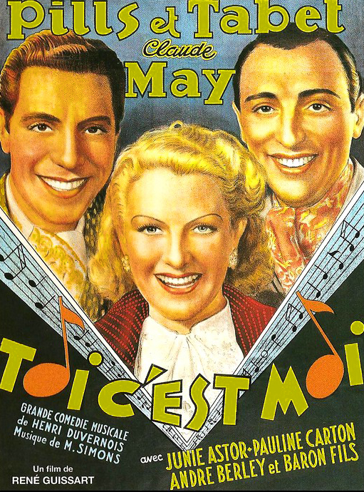 Notre avis : En 1936 sortent en France Le crime de monsieur Lange, Le roman d’un tricheur ou La belle équipe, que l’histoire du cinéma a retenus et glorifiés, mis parfois en parallèle avec le Front Populaire. Mais les spectateurs de l’époque ont vu, et souvent de manière plus massive, Marinella, ou ce curieux Toi c’est moi, adapté d’une opérette, c’est à dire des œuvres anodines reposant sur le succès de chanteurs en vogue, des chanteurs jeunes et populaires, même si en l’occurrence, Pills et Tabet sont aujourd’hui bien oubliés. Ce duo séparé en 1939 a pourtant comme titre de gloire d’avoir entonné le fameux Couchés dans le foin, et pour l’un, d’avoir épousé Édith Piaf. Inutile de dire que les jeunes générations ignorent tout de ces duettistes d’une ère considérée comme préhistorique.