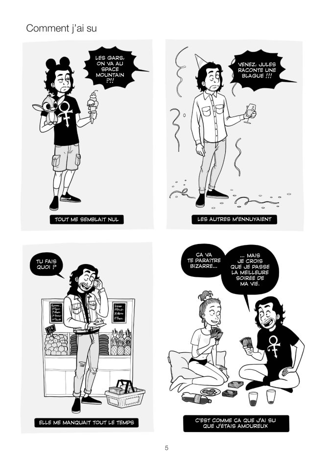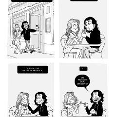 Critiques : Par ces temps pas toujours sympathiques, il faut bien le dire, il fait du bien ce livre tout mielleux de Pacco, qui chante ici d’une manière lyrique et comique son amour pour sa belle, la dessinatrice Margaux Mottin (les deux formant un Power Couple de la BD façon Beyonce/Jay-Z). En effet, ce petit format, ces gags en quatre cases, ces chutes pleine d’autodérision sincère et d’amour dégoulinant nous rappellent en toute humilité que nous les hommes (pour un grand pourcentage tout de même), nous sommes des romantiques dans l’âme et des amateurs de câlins au plus profond de notre être. Merci à Pacco donc d’avoir rédigé et dessiné ce livre qui livre non pas des secrets inavouables, des méthodes de séduction ultimes ou des conseils de couple, mais bien un recueil en forme d’éloge de la vie à deux, fait de quotidien répétitif et de partage d’intérêts, d’écoute franche et de mots gentils. Merci à lui, car si le public féminin devrait le repérer, peut-être que des hommes pas habitués à lire ce genre d’albums pourront le recevoir, le récupérer et l’apprécier.