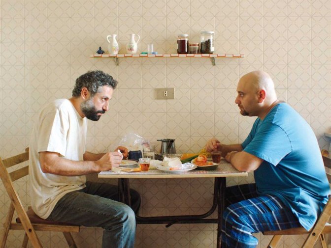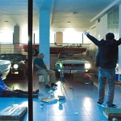 Notre avis : Samir est-il mort ? En tout cas, s’il est vivant, il a traversé un enfer qui ne l’a pas complètement ramené à la vie, bien qu’il boive, danse et regarde les jolies filles. D’où sort ce moribond, que des noirs hissent sur la plateforme d’un pick-up ? Rapidement, on le saura : c’est un survivant de la terrible guerre civile au Liban, dont les stigmates ne seront jamais évoqués de manière emphatique, plutôt transfigurés, souvent par le truchement de scènes loufoques. Si le film reconfigure d’une certaine manière le duo de l’auguste et du clown blanc, il dépasse ce simple attelage, par une constante inventivité burlesque. Wissam Charaf connaît ses classiques : les gags millimétrés doivent beaucoup à Keaton et Tati. On pense en particulier aux postures synchrones des gardes du corps, s’exerçant à bricoler leur arme, ou à l’impeccable géométrie avec laquelle le corps de Samir tombe sur le canapé. Finalement, c’est sans doute lui qui se porte le mieux et les autres lui font payer le prix d’être aussi vivant, en particulier son frère Omar. Ce dernier ne l’accueille pas avec la plus accorte des manières, puisqu’il l’agresse d’abord physiquement, avant de la ramener chez lui, contraint par la violence qu’il lui a infligée et l’a laissé par terre.