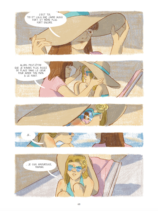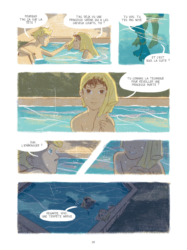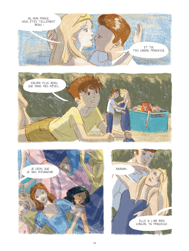 Critique : Durant la lecture de Toutes les princesses meurent après minuit, l’impression de construction trop parfaite peut déranger quelque peu : les récits des différents membres de la famille se croisent et s’épaulent ; la thématique et la symbolique de la consumation (Lulu s’enflamme pour Yoyo, Cam brûle au soleil, l’amour que se portent les parents s’est consumé…) imprègnent le récit ; les couleurs ont parfois l’allure du pastel gras mais paraissent effectuées à l’ordinateur… Tout paraît trop travaillé pour paraître naturel. Sauf qu’à la fin de l’aventure, la déflagration produit ses effets et nous sommes véritablement soufflés.