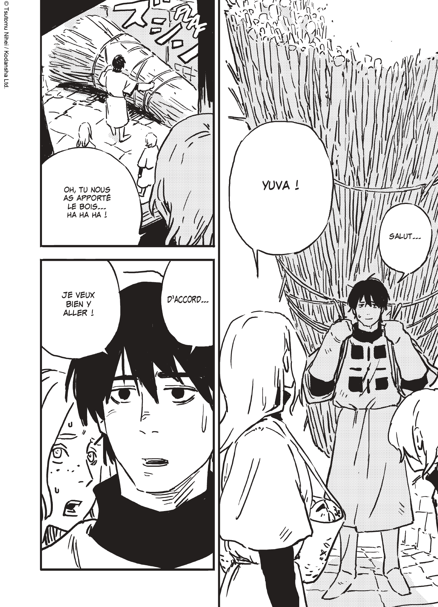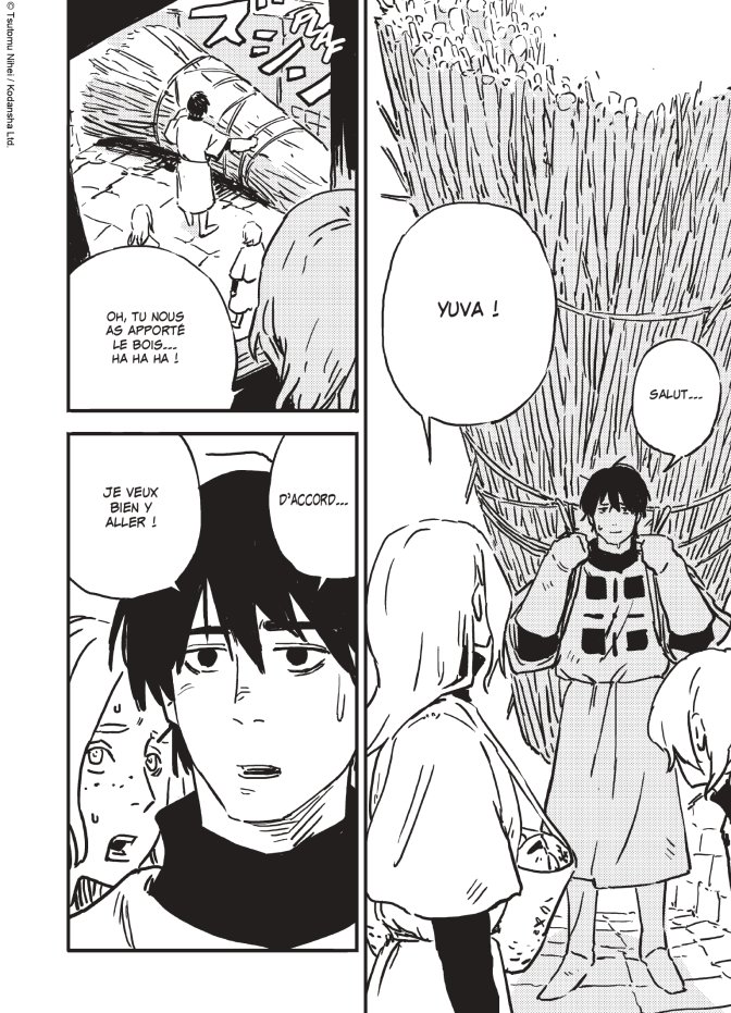 Cette histoire coche toutes les cases des classiques de la fantasy : un Donjon, Une Princesse, des Sorciers et des Guerriers … jusque-là, rien de très original pour les connaisseurs du genre, et pourtant Nihei réussit à apporter une touche de nouveautés ! Pour commencer, il réussit à nous attacher à Yuva, ce jeune fermier, naïf, foncièrement gentil et incroyablement costaud ! Un héros malgré lui qui n’a pour l’instant que très peu d’aptitudes pour survivre au Donjon et pourtant il a réussit à ravir notre cœur.
