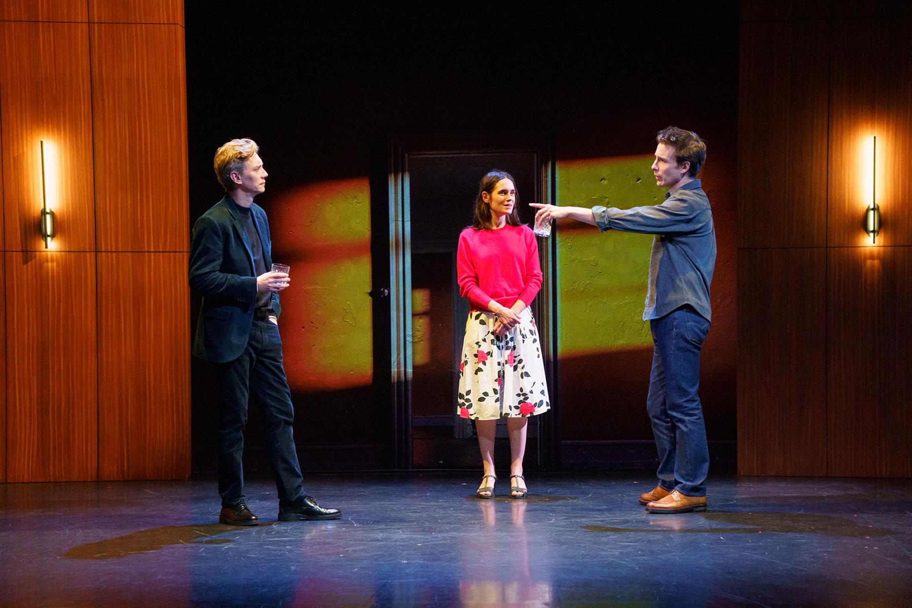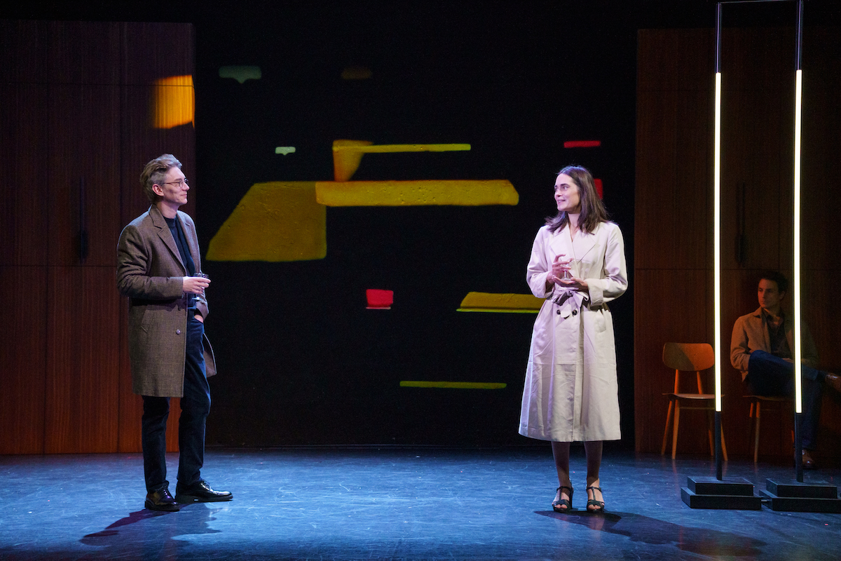Trahisons entre mari et femme, entre deux meilleurs amis, entre deux amants... Et l’effet du temps. Oui, car l’ordre déchronologique rend compte également des souvenirs qui restent partiellement, de la mémoire qui s’étiole, et des sentiments qui demeurent ou non. On notera également qu’au-delà des prestations des trois comédiens, qui incarnent trois portraits psychologiques bien distincts avec justesse, un choix de mise en scène est sans doute le plus intrigant et bien pensé dans cette nouvelle représentation de la pièce de Pinter : inclure la présence et le regard du troisième personnage dans une scène où seuls les deux autres se trouvent normalement. Comme s’il y avait toujours eu le troisième être dans les relations à deux, quelles qu’elles soient. Les deux personnages se parlent mais pensent au troisième, le troisième imagine comment les deux autres auraient pu se révéler certains secrets. On ne sait.