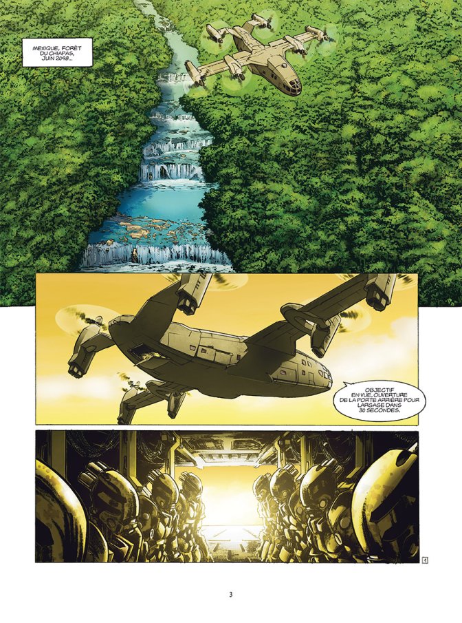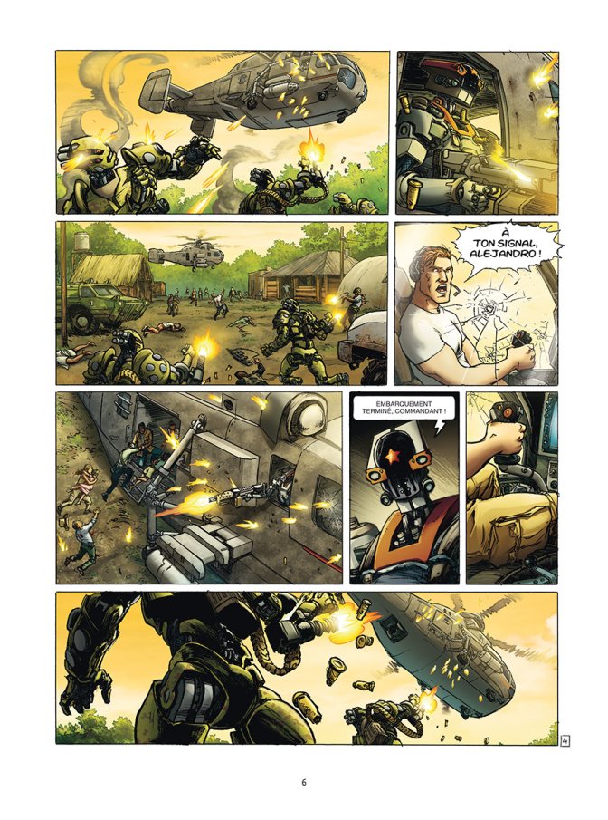 Le Mexique est en ruines, tiraillé entre un gouvernement corrompu qui a fait alliance avec les narcotrafiquants pour évincer un dernier rempart rebelle et progressiste. Pour que l’ONU puisse intervenir, il manque des preuves d’exactions ou d’ingérences. Au cœur de la dernière ville qui résiste, Travis tente de trouver ces preuves, mais les dernières poches de résistance tombent les unes après les autres, tandis que dans la jungle, Vlad Nykri fait tout pour retrouver son ami. Cette belle amitié ne doit pas faire oublier que le sujet est très actuel, car le Mexique de la seconde moitié du XXIème siècle jette un voile pudique sur la situation syrienne de notre première moitié de siècle, où les gens meurent sans que la communauté internationale ne puisse intervenir. Bref, un bon message politique, une diffusion que la science-fiction fait très bien, comme à son habitude. Les amateurs de la série Travis ne seront pas dépaysés de cette atmosphère très cynique, entre multinationales prêtes à tout et milices privées plus puissantes que certains états... Pour ceux qui s’attaquent à ce nouveau cycle, qui a démarré précédemment, la guerre est désormais déclarée, et il y a un petit côté Terminator, avec des robots exterminateurs d’humains qui ont été lâchés dans la jungle, qui ont échappé au contrôle de leurs créateurs qui qui instaurent une ambiance angoissante, avec ce message subliminal que l’homme ne cesse de créer et parfois libérer des choses qu’il ne maîtrise pas vraiment. Du coup, entre les batailles et cette traque, l’action est bien présente et même exemplaire, développant encore la dimension de cette saga.