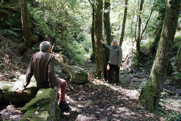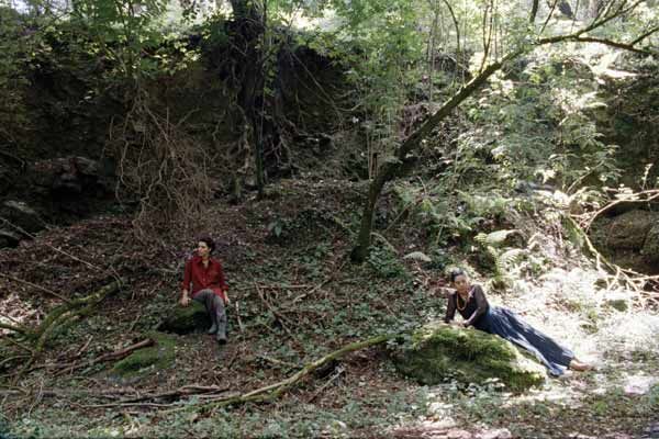 Les deux autres courts métrages de cet ensemble de trois films nous transportent dans un sous-bois de Toscane au mois de juin où les alternances de soleil et de passages nuageux créent des effets atmosphériques saisissants qui interagissent avec le texte admirable de Pavese, tiré des Dialoghi con Leucò. Le genou d’Artémide, d’après La belva - La bête sauvage , nous fait d’abord écouter sur fond noir un long extrait de Mahler s’achevant sur la répétition toujours recommencée du mot « ewig » (éternellement). Puis se font face Endymion et l’étranger, deux acteurs amateurs du théatre de Buti, en plans d’ensemble fixe entrecoupés de gros plans saisissants. Le film s’achève par de longs panoramas sur la clairière, nous faisant recevoir comme une révélation le moindre effet de lumière sur les troncs d’arbre.