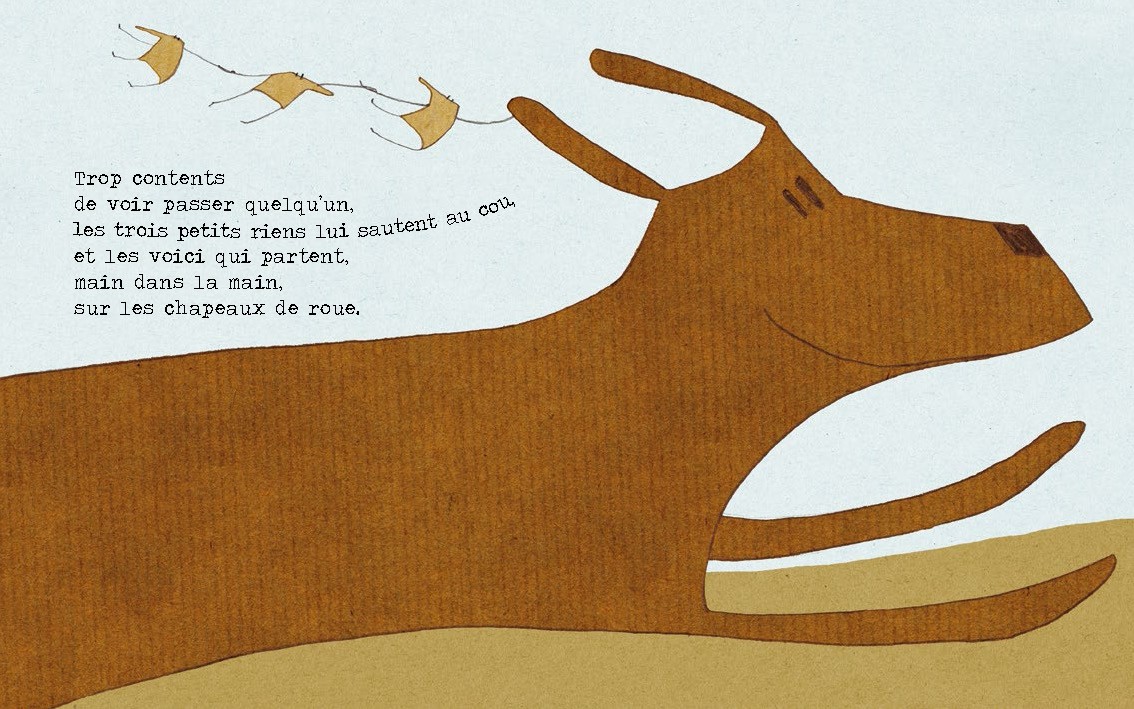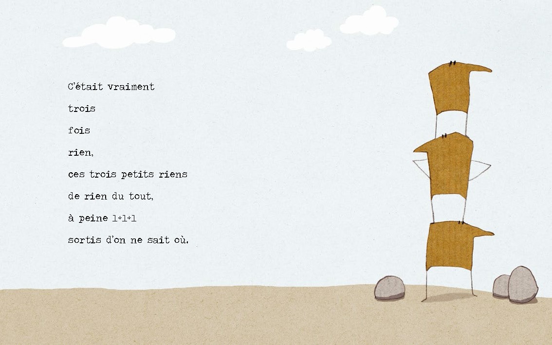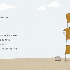 Une histoire simple, drôle et tendre, aux couleurs naturelles, sur fond de carton, support fort et fragile à la fois, tout comme nos petits Riens.