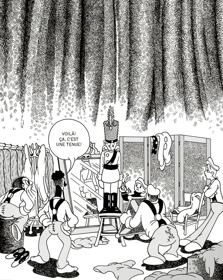 Dans la forme, les inspirations graphiques sont nombreuses. Baptiste Delengaigne revendique une filiation directe avec Osamu Tezuka, et il est vrai que ses personnages rappellent l’esthétique du père d’Astroboy. Mais on perçoit aussi un lien avec la bande dessinée américaine des années 1930, notamment Popeye, ainsi qu’avec les dessins animés des Looney Tunes. Difficile également de ne pas penser à la bande des Pieds Nickelés de Forton, version dévoyée. Ce détournement volontaire du patrimoine graphique ancre encore davantage le récit dans la satire.