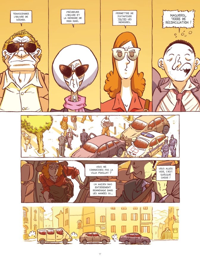 L’album articule autant les enjeux politiques qu’historiques et artistiques. Il confronte aussi différents témoignages de personnes ayant vécu du côté français ou algérien cette période qui aboutit à l’indépendance de l’Algérie. Dans cette fiction, le maire tient à ce que l’historienne missionnée par le ministère de la Culture aille avec l’aide d’une bibliothécaire municipale recueillir les souvenirs et témoignages des habitants de sa commune cultivant de près ou de loin un lien avec cette guerre. Le récit est donc ponctué de témoignages divers qui soulignent combien les mémoires de cette page d’histoire sont multiples. Les témoignages sont insérés dans le récit de manière sobre et ils font tous l’objet d’un même traitement graphique.