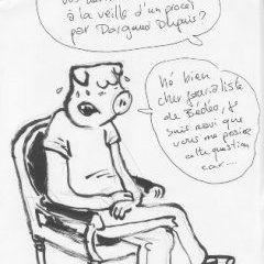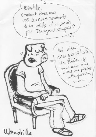 [Wandrille] Il a travaillé avec les plus grands, puis avec les indépendants, c’est une véritable pute graphique ! Il a un talent certain pour le dessin à gros nez ! Il a eu des problèmes avec la justice suite à un livre qu’il a réalisé sur Franquin qui, pour des raisons de plagiat évident, n’a pas plu à la famille et aux amis de l’artiste. Et comme je savais qu’il était à 2 doigts d’être lâché je me suis dit que c’était le moment de le replonger dans une nouvelle tempête juridique en lançant un deuxième pavé dans la mare...