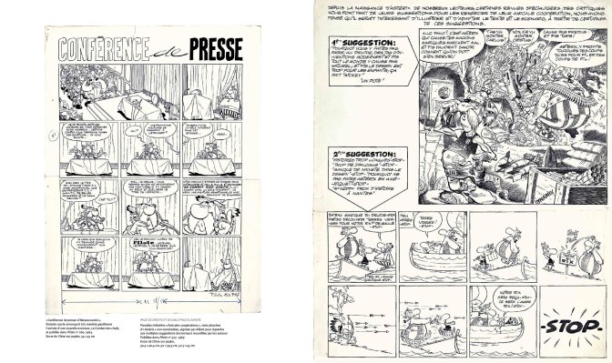 Le dynamisme de la mise en scène, les styles se mélangeant à merveille, des décors réalistes d’Astérix, comme cette vue en hauteur de Rome, à ses héros caricaturaux, avec grands yeux et gros nez, tout nous apparaît encore plus fort dans ces étapes de travail.