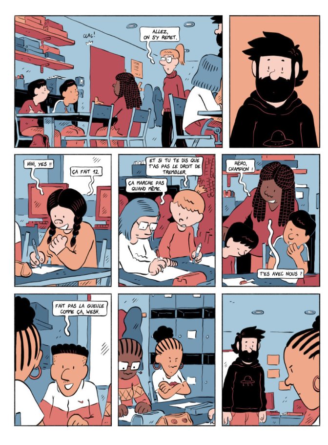 Critique : Comment Fabien Toulmé parvient-il encore et toujours à inspirer autant d’empathie avec son histoire ? La question peut paraître redondante, mais elle tient lieu d’affirmation, car il y parvient toujours, quelque soit son sujet. Dans cet album, qui a été inspiré d’un moment de la vie de l’auteur, les personnages sont fictifs mais on comprend que chacun provient des observations qu’il sait si bien faire lorsqu’il est sur le terrain. Chacun d’eux dégage une profonde compassion de la part du lecteur, car sans trop en faire, Fabien Toulmé leur donne à tous une fragilité et une force, alternant l’un et l’autre sans montagne russe, prouvant qu’ils sont humains par leur faiblesse, que ce soit un jugement hâtif, un handicap ou un trop plein d’émotion, mais aussi leurs qualités, que ce soit leur courage, leur abnégation ou leurs sentiments toujours intacts. En se limitant quasiment à la salle d’Ulis, véritable sanctuaire au cœur d’un collège pour des élèves qui n’y ont pas une place claire et définie par la norme, ce cheminement de compassion s’éclaire à mesure que la salle devient moins étroite pour le personnage principal, même si celui-ci est rapidement éclipsé par les caractères des élèves d’Ulis. Enfin, comme toujours lorsqu’il s’agit d’évoquer un travail pénible mais gratifiant, Toulmé impose en sacerdoce ceux qui œuvrent pour les autres, sans reconnaissance ni salaire convenables ou dignes, notamment les AESH et les professeurs.