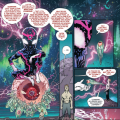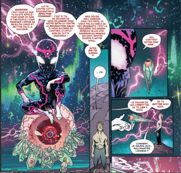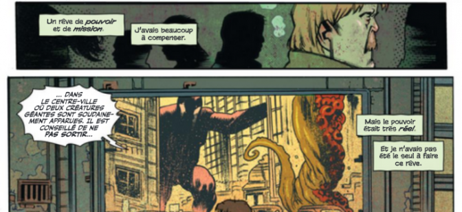 Critique : Comment renouveler un genre lorsqu’il a été récemment déjà modernisé, voire compressé ? Ultramega, en passant derrière Pacific Rim, (qui a eu droit à une suite assez catastrophique), les remake de Godzilla et Attack on Titan, pouvait apparaître comme une énième œuvre un peu clichée pour justifier de gigantesques combats que la titanomachie avait inspiré. Et pourtant, ce premier tome piloté par James Harren parvient à imposer un style et une empreinte forte : d’abord un poil ironique, proche de la farce, il prend un virage horrifique, que le gore ne gomme pas, mais au contraire polit, approfondit, faisant rebondir les péripéties comme autant de scènes différentes, qui pourraient apparaître même discontinues. Ainsi, l’affrontement monumental du début, comme une parodie brutale d’un combat de Power Ranger, sert de référence pour un spectacle parodique dans un chapitre suivant, grotesque combat rappelant une corrida ou un combat de gladiateurs. Au centre, un oeil gravite, des forces sont en présence, dessinant un destin plus large que ce que ce premier tome veut bien offrir.