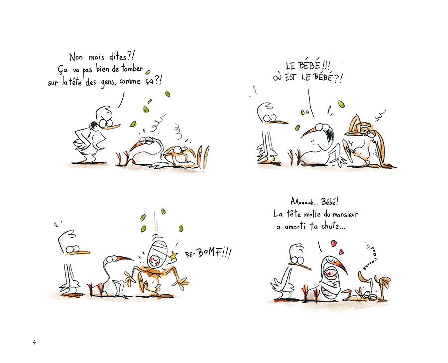 Résumé : Le traditionnel circuit de livraison des nouveaux-nés est interrompu lorsqu’une cigogne un peu fainéante se brise l’aile. Un lapin, un canard et un cochon vont se retrouver embarqués dans une quête rocambolesque vers Avignon pour livrer un bébé pas veinard, mais qui aura vu du pays avant d’arriver chez ses parents...