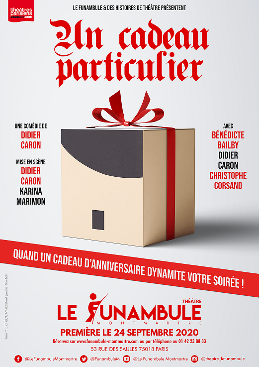 Critique : Un cadeau particulier est la onzième pièce de Didier Caron, qui endosse plusieurs costumes (auteur, metteur en scène, et comédien), menant une carrière inscrite dans la pérennité, sans pour autant s’affranchir de nouveauté. Ce texte n’est pas sans rappeler, selon son point de départ explosif, la pièce Le prénom de Matthieu Delaporte et Alexandre de La Patellière (2010). Ici, ce n’est pas un prénom qui est source de querelles, semblables à des salves verbales entre amis, plutôt un cadeau, vraiment particulier. Celui-ci va semer une zizanie vaudevillesque dans un dîner d’anniversaire entre des gens qui s’entendent depuis toujours, mais dont les masques vont tomber pour nous laisser assister à des aveux en cascade. L’image que l’on a de soi est souvent fausse, lorsqu’elle est passée au révélateur du regard des autres.