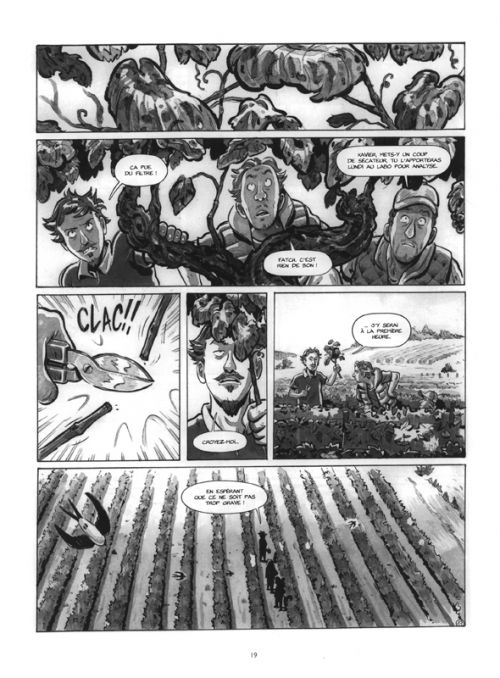 Mais ce récit noir et blanc fort bien dessiné reste intrigant à la lecture. Et si la solution du problème arrive un peu comme une forme de deus ex machina, on n’en tiendra pas rigueur aux auteurs, car le voyage en compagnie de lascars si bien peints comme Jojo, Samuel ou encore Manu qui revient et la découverte de quelques bons crus vaut bien le détour par cette terre de Bourgogne bien illustrée.