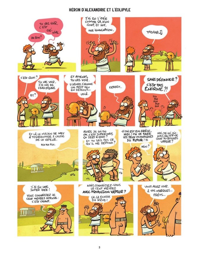 Résumé : Ce deuxième tome commence dans la Grèce antique. Héron d’Alexandrie a inventé une sorte de machine à vapeur. Mais personne n’en voit l’utilité. Il décide alors que cette machine sera utilisée aux prochains jeux olympiques. Un athlète va faire les frais de ces différents essais peu convaincants, mais Héron d’Alexandrie ne lâche rien...