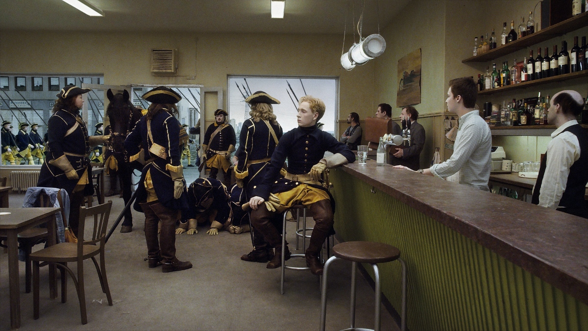 Notre avis : Après Chansons du deuxième étage, sorti en salles en 2000, et Nous, les vivants, sorti en 2007, grâce auxquels Roy Andersson établit son style fait de plans fixes et son ton scénaristique mâtiné d’humour légèrement grinçant, Un pigeon perché sur une branche philosophait sur l’existence – titre complet du film – constitue le troisième et dernier volet de la Trilogie des vivants. Ce sont des tableaux vivants qui font pénétrer le spectateur dans l’univers du film, autant de courtes scènes où les personnages se croisent, disparaissent pour laisser le cadre à d’autres personnages, puis réapparaissent avec une certaine théâtralité s’opposant à la trivialité et au caractère quotidien des événements auxquels ils sont confrontés.