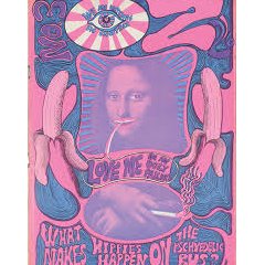Des thèmes comme l’homosexualité, le féminisme, l’écologie, la défense des indiens et la religion émergent, illustrés de couleurs et de typos psychédéliques.