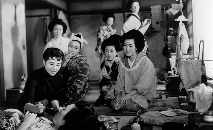 Situé dans les quartiers de plaisirs, c’est à dire de la prostitution, comme Gion no shimai - Les soeurs de Gion (1936), Yoru no onnatachi - Les femmes de la nuit (1948), Gion bayashi - La fête de Gion (1953) ou Akasen chitai - La rue de la honte (1956), le film décrit cet univers avec une richesse de détails et une acuité documentaire impressionnantes et dénonce avec virulence le sort réservé aux femmes dans la société japonaise au travers de l’histoire d’une tenancière de maison de geishas et de sa fille, élevée loin de ce monde.