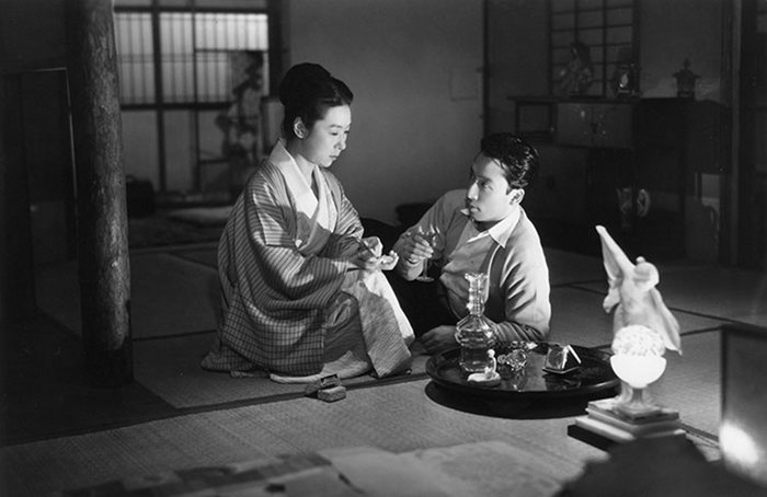 L’immense Kinuyo Tanaka, qui tournait avec Mizoguchi pour la quatorzième fois, est encore une fois sublime dans le rôle de cette femme d’affaires sans états d’âmes que sa passion pour le jeune médecin met en crise. Mais toutes les figures féminines font l’objet d’une attention affectueuse, chacune des geishas titubantes sur leurs hautes semelles en bois et engoncées dans leur tenue d’apparat étant soigneusement caractérisée et individualisée.