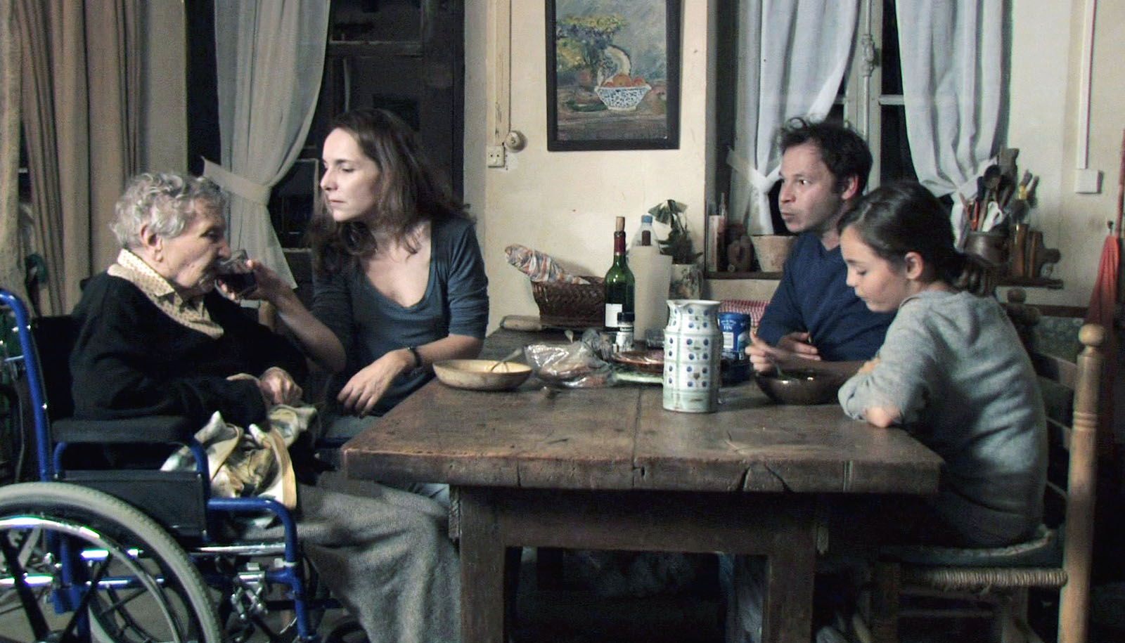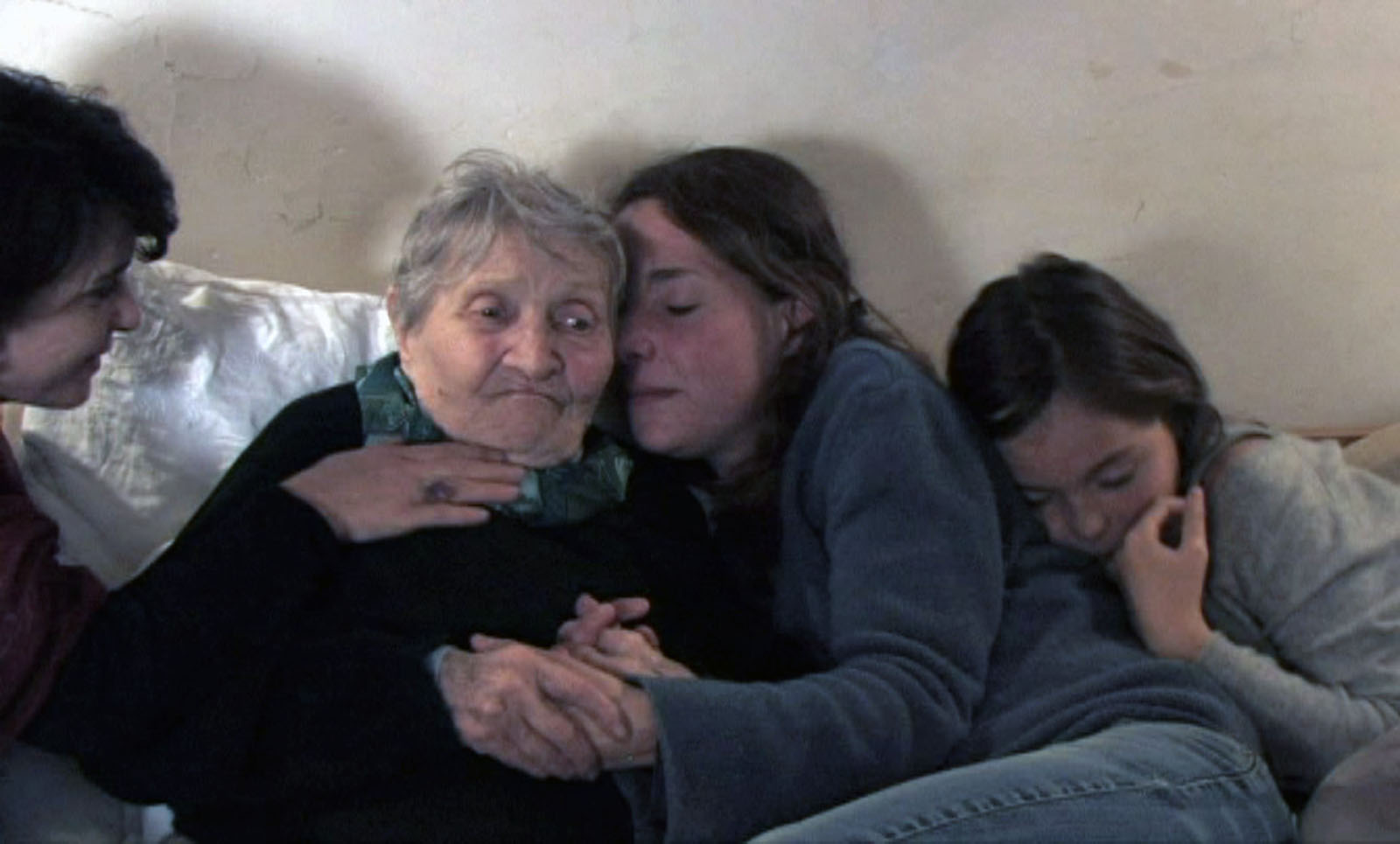 Notre avis : D’abord, on ne comprend pas la multiplicité des personnages que rien ne relie, sinon la volonté d’un montage expressif. On se doute que les uns et les autres convergeront vers la vieille dame de quatre-vingt seize ans. Ils le feront dans le calme d’une ferme, pour soustraire la paisible valétudinaire au décor clinique d’une maison de retraite. Plutôt que de la laisser mourir à petit feu, ils la divertiront, sans oublier qu’eux-mêmes tentent de se réinventer une existence en communauté, entre solidarité et blagues potaches. Deux marginaux qui singent l’enfance sur un mode brélien font les clowns autour de Mamine, rebaptisée "mère-grand", parce que c’est leur façon à eux d’en prendre soin. Au-delà des pitreries, la caméra s’attarde sur la prévenance des uns et des autres, lorsqu’il s’agit de coucher cette femme ou de la faire manger. D’autres plans, plus statiques, construisent des tableaux superbes où la petite fille, pas dupe des mensonges adultes, rejoint son arrière-grande mère dans un sommeil tendre. A ces moments précis, le temps lamartinien suspend enfin son vol. Certes, on devine que la mort n’est jamais loin, mais si proche de la nature, on imagine que Mamine s’éteindra doucement, entourée d’une affection sincère, plutôt que d’agonir comme un numéro, entre quatre murs anonymes, dans une chambre qu’il faudra rapidement libérer.