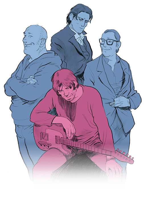 Notre avis : Chaque protagoniste a une personnalité bien tranchée mais assez classique et convenue : l’homme marié PDG et père de deux enfants dont la vie ronronne, le multi-divorcé potache, le dépressif chronique et, enfin, la rock star adulée ayant réussi à percer à l’insu des de ses amis. On a réellement des difficultés à s’attacher à chacun d’entre eux mais heureusement, les flashbacks, le séquençage et la mise en page des cases donnent du rythme au récit et Zep réussit à nous faire partager son amour du rock (oui, oui n’oublions pas que son pseudonyme est un hommage au groupe de Page, Plant et Jones). L’on retiendra aussi un dessin vaporeux enveloppé dans de belles variations et alternances de couleurs, incluant le fameux cocktail spleen, drogue et sexe (ça aurait plu à Ian Dury)
