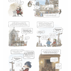 Résumé : Quand, par qui et dans quelles circonstances a été fondée la Comédie-Française ? Est-ce vrai que c’est Molière qui est à son origine ? Comment cette ancienne institution – l’une des plus ancienne de l’histoire de France – a-t-elle survécu aux soubresauts de événements, et en particulier de la Révolution française, elle qui était associée au pouvoir monarchique ? Comment le statut des comédiens, autrefois rejeté de la communauté des croyants en raison de leur métier et qui n’avaient pas le droit à une sépulture digne de ce nom, a-t-il évolué au fil du temps ? C’est à toutes ces questions, et bien d’autres encore, que répond cette Histoire de la Comédie-Française, dont le nom est – comme le rappelle bien le titre de l’album – souvent associé à Molière, qui constitue notre guide dans ce périple.